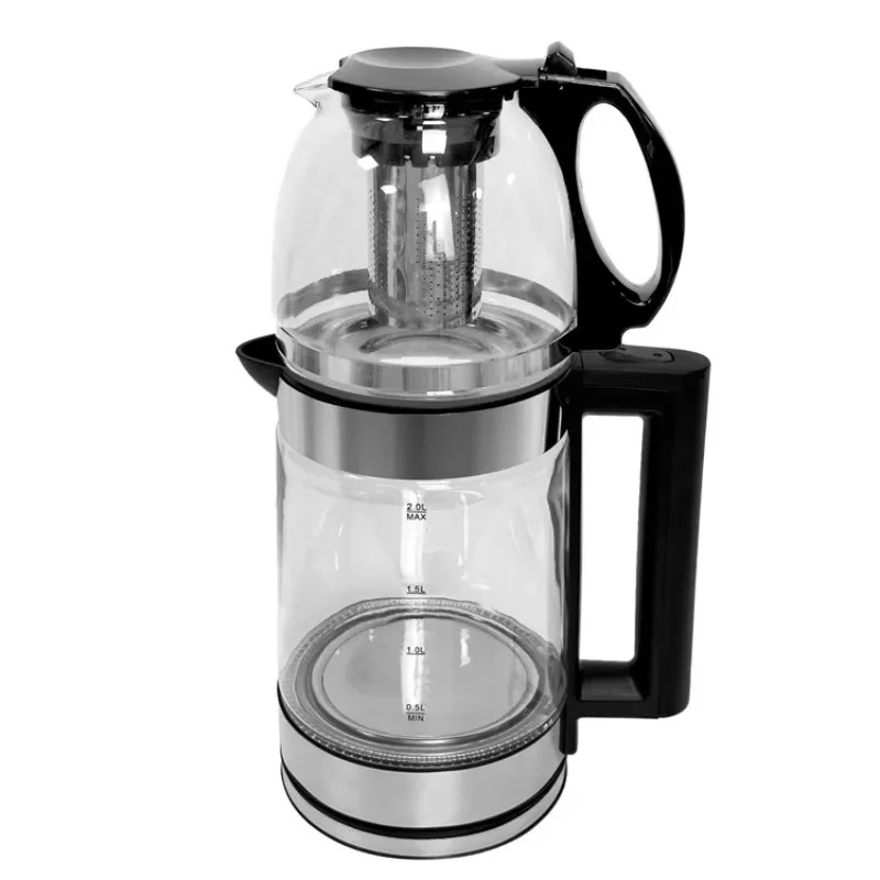 غلاية كهربائية 2 لتر مع إبريق شاي بخار 0.8 لتر – سعة كبيرة، تصميم أنيق، مثالية لمطبخك في السعودية. اشحنها واستمتع بتحضير الشاي والقهوة بسهولة وستايل.