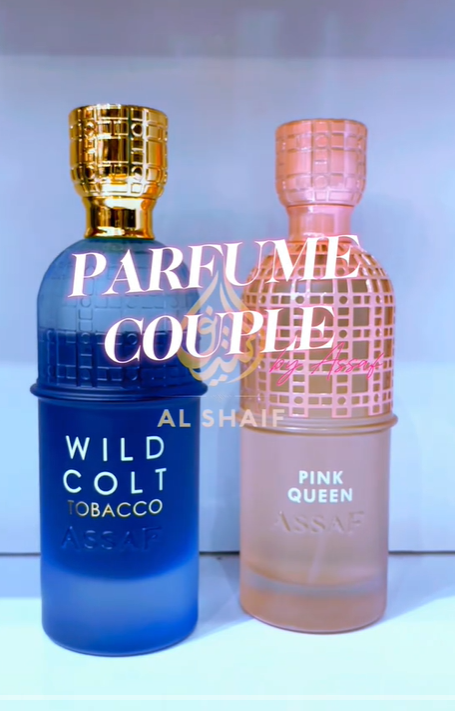 طقم عسَاف Wild Colt & Pink Queen 200 مل – عطور ثنائية فاخرة رجالي وانثى بحجم كبير وثبات قوي تضمن لك حضور لا يُنسى .